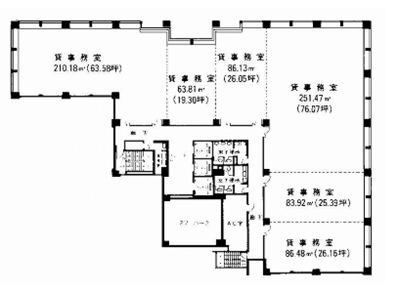 ■ 24時間使用可能 / ■ エレベーター複数基 / ■ セントラル空調方式 / ■ 有人・機械併用警備 / ■ 光ファイバー / ■ OAフロア / ■ トイレ(ウォシュレット) |