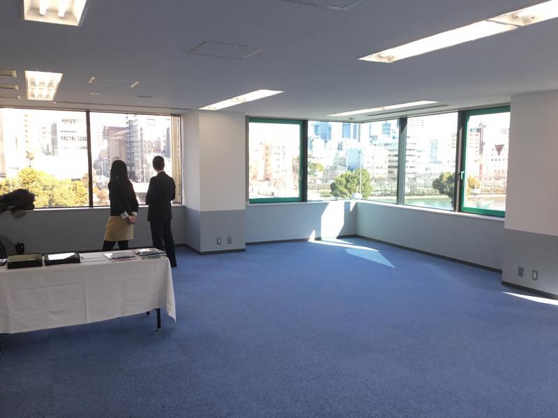 リバーサイドで眺望良好、青い外壁が目を引くスタイリッシュなオフィスビルです。ワンフロアーワンテナントでOAフロアーも完備しております。 |