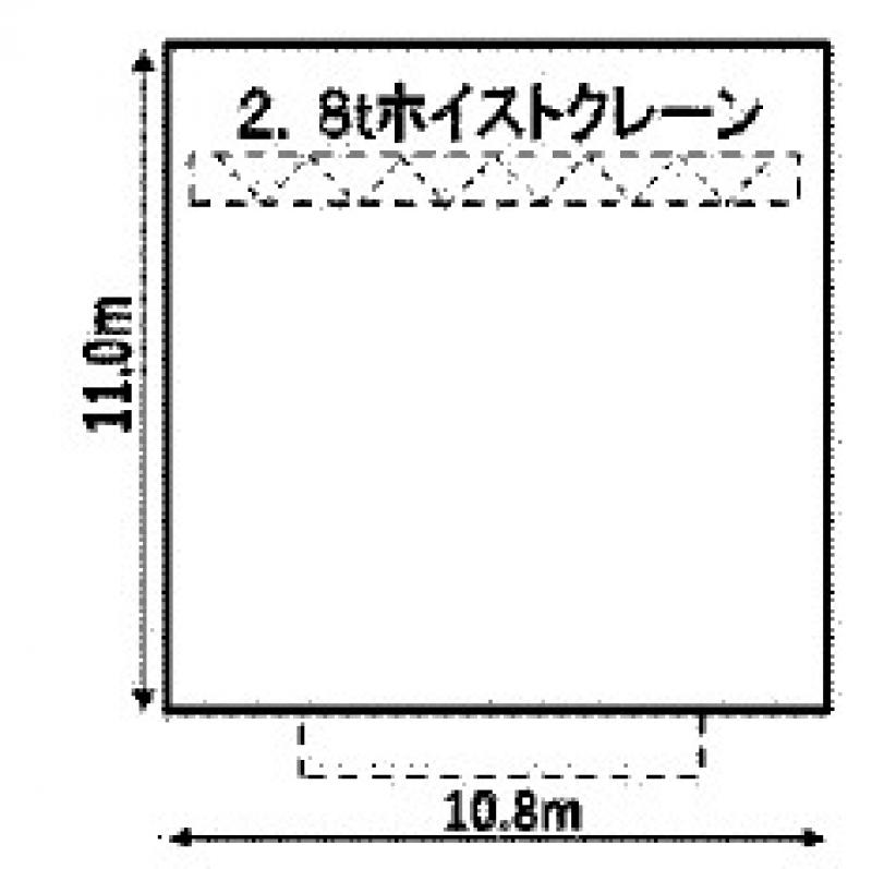 延床面積約35.94坪の平屋建ての貸倉庫です。阪神高速湾岸線中島IC近く。2.8tホイストクレーン付き。天井高9.0m。工業専用地域。 |